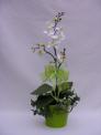 Orchidee weiß Unikates Einzelstück: weiße Phalaenopsis in einem grünen Übertopf, mit Efeu und Schleifenband (Durchmesser ca.15cm; Höhe ca.55cm) 19,50 EUR